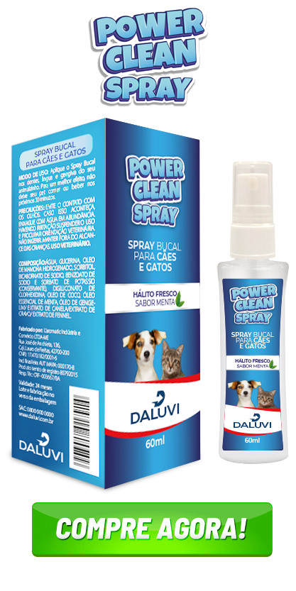 O Power Clean Spray age diretamente na raiz do problema, eliminando as placas bacterianas que causam o tártaro, além de acabar com o mau hálito e ainda clarear os dentes do seu melhor amigo.